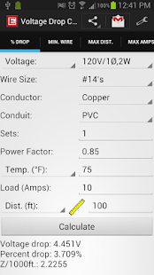 • Calculate Voltage drop: Find minimum VD wire size, maximum length for any given wire size to stay within specificed VD, • Works as a standard math or electric calculator • Quick and easy updates to future NEC® code revisions ... View Video